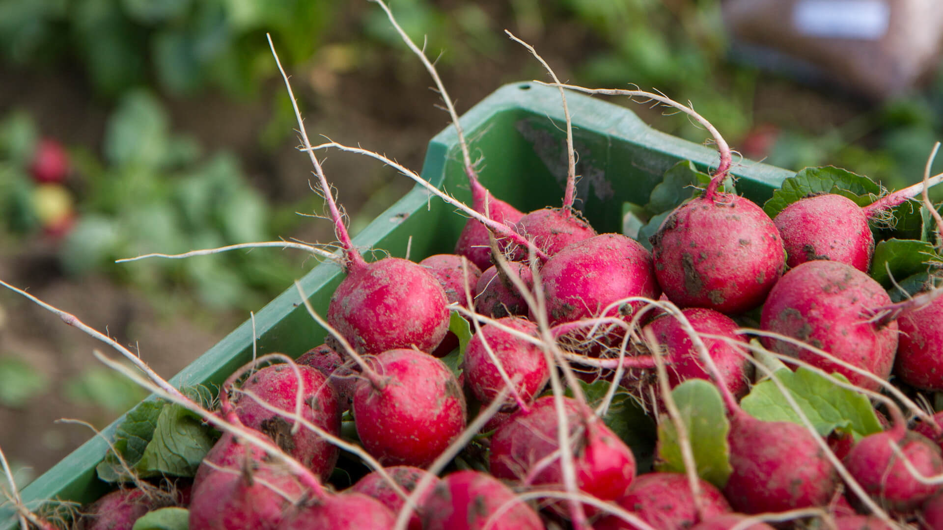 Radieschen, Porree, Kürbis und viele weitere Sorten reifen hier mit Rücksicht auf Boden, Tiere und Klima.