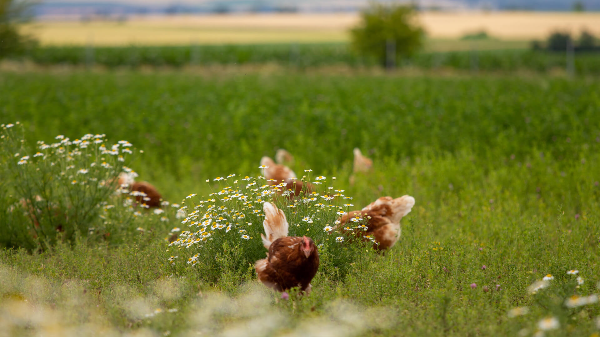 Bio-Hühner und Felder sind im engen Kreislauf verbunden: Der Dünger der Tiere stärkt die Böden und frische Pflanzen werden wieder gefüttert.