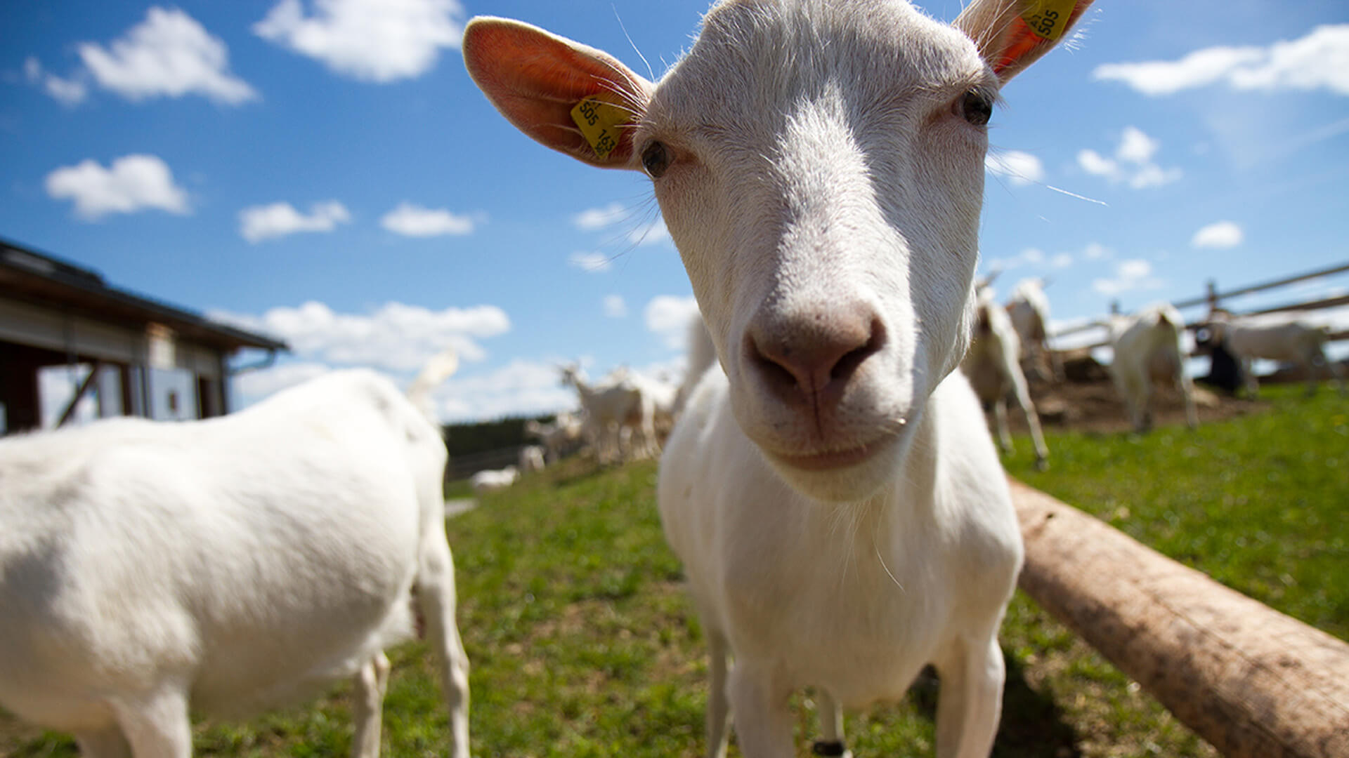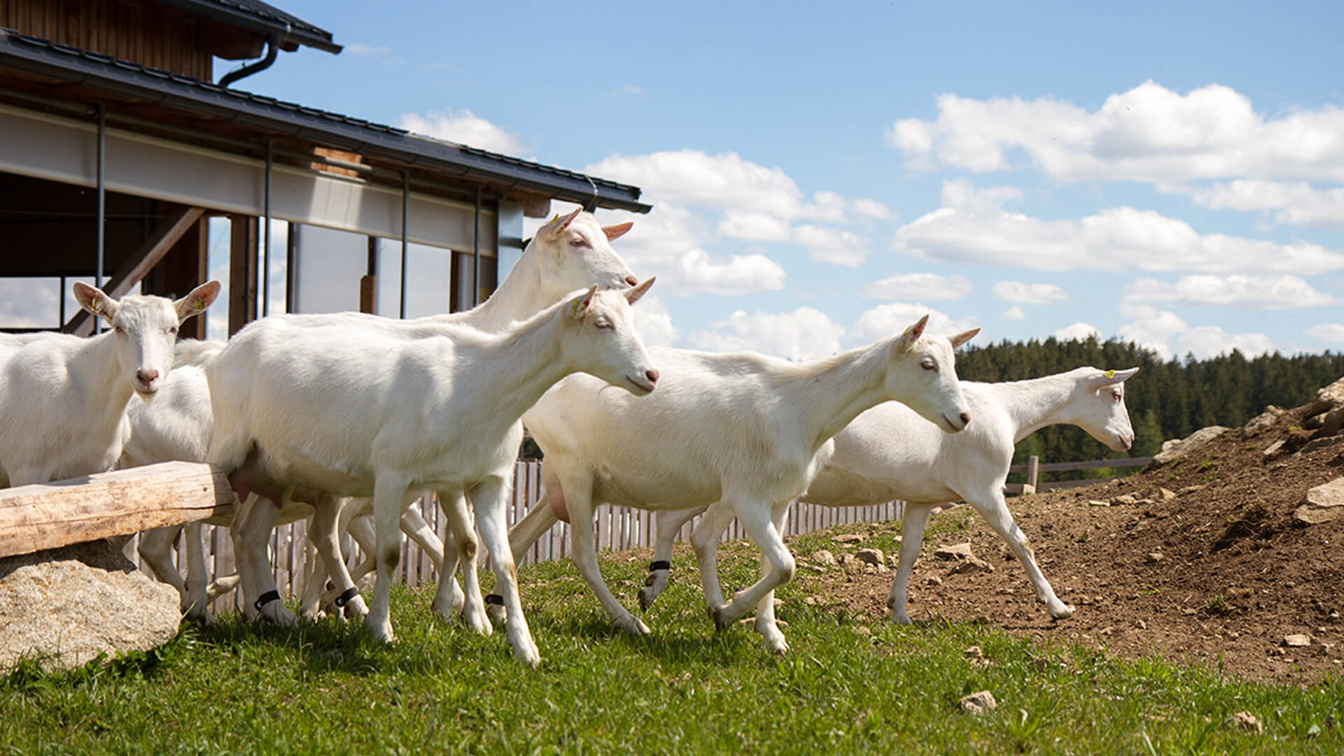 Auf rund 25 ha Fläche leben hier 125 Bio-Milchziegen, die täglich ca. 3 Liter Milch pro Ziege geben.