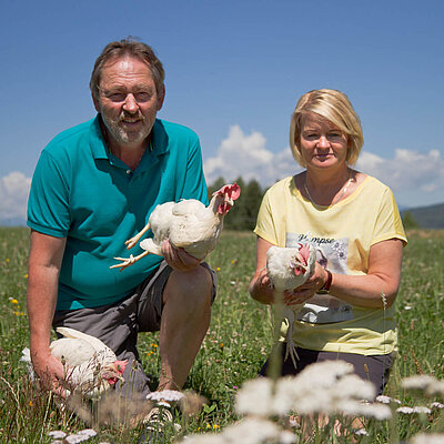 Familie Maier führt ihren Bio-Betrieb im Steirischen Bergland mit großer Sorgfalt. Auf rund 1.200 Meter Seehöhe leben die Legehennen in artgerechter Haltung mit viel Platz.