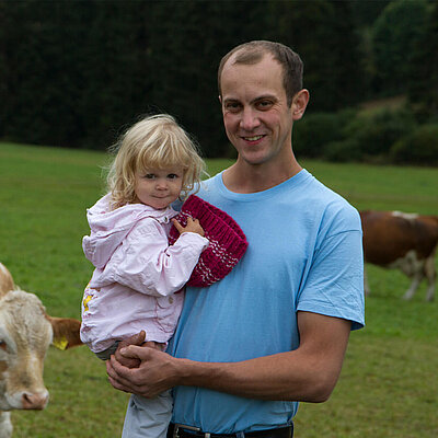 Wir sind alle sehr tierliebend und es taugt uns voll! Ich kann bei den Kindern bleiben und habe die Tiere. Und der Grund ist da. Mir ist wichtig zu sehen, dass es den Kühen gut geht. Dass alles für sie passt und alles sauber ist. Wir haben einen neuen Stall, den kann man auch alleine machen.
