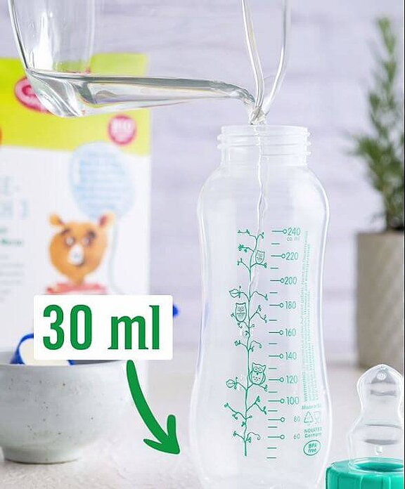 1 Messlöffel Pulver zu 30 ml Wasser: Das ist die neue, vereinfachte Dosierung unserer BIO-Milchnahrung mit Heumilch. So können ganz einfach auch die kleinsten Mengen zubereitet werden! Die vielen positiven Erfahrungsberichte von Eltern, die unsere BIO-Milchnahrung mit Ziegenmilch mit diesem praktischen Dosierschema schon von Anfang an für ihre Babys verwenden, haben uns zu diesem Schritt bewegt. Schauen Sie sich das an!