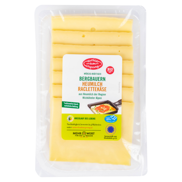 Hergestellt aus Heumilch aus der Region Kitzbüheler Alpen und zum Teil aus der Bergregion Kufstein.