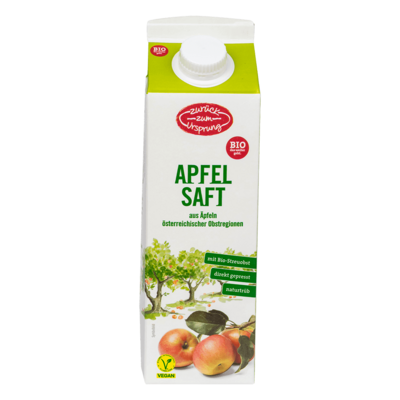 100 % direkt gepresster, naturtrüber Apfelsaft, aus österreichischer kontrolliert biologischer Landwirtschaft