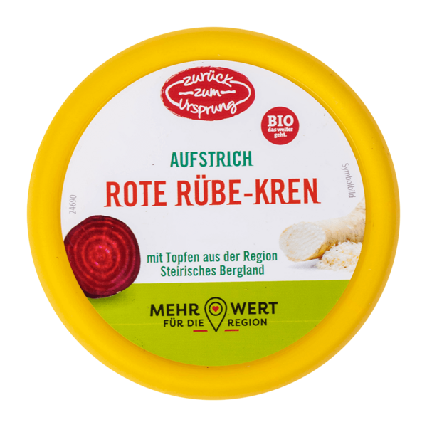39% Topfen** (20% F.i.T.), 21% Rote Rüben **, Sonnenblumenöl**, Wasser, Krenzubereitung (2,7% Kren**, Wasser, Weingeistessig**, Sonnenblumenöl**, Zitronensaft* aus Zitronensaftkonzentrat), Sonnenbumenkernmus*, Apfelessig**, Maisstärke**, Speisesalz, Apfelsaftkonzentrat*, Senfkorn*, Rote Rübenpulver*, Gewürze*