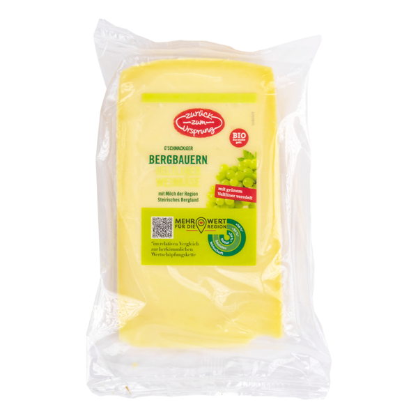 Österreichischer Bio-Hartkäse mit Rotkultur, 50% Fett i. Tr., mit Wein und Gewürz verfeinert, aus pasteurisierter Bio-Milch