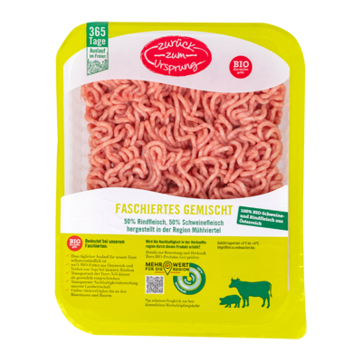50% Bio-Rindfleisch, 50% Bio-Schweinefleisch aus Österreich