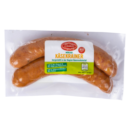 210gnicht in allen Filialen erhältlichDie Zurück zum UrsprungBIO-Hühner Käsekrainer sind reine Hühnerwürstel verfeinert mit köstlichem BIO-Emmentaler. Sie sind eine schmackhafte Alternative zum Braten und Grillen. Für die Herstellung der Würstel wird auch Hahnenfleisch aus dem Projekt "Bruderwohl" verwendet.