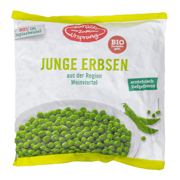 750gim PapierbeutelNur die besten Bio-Erbsen aus der Region Weinviertel kommen bei Zurück zum Ursprung in den Papierbeutel. Nachhaltig angebaut und sofort nach der Ernte verarbeitet, bleiben sie knackig frisch und sorgen für einen Genuss zu jeder Jahreszeit.