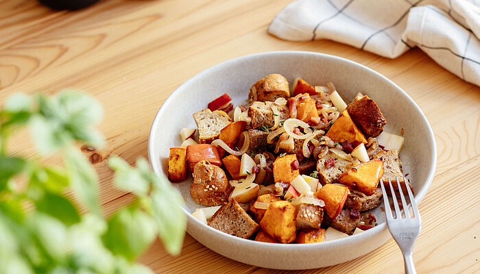 Dinkelmehl** (eine Weizenart), Zucker**, Butter**, Haferflocken**, 6 % Kürbiskerne**, 4 % Karottensaft**, Sonnenblumenöl**.