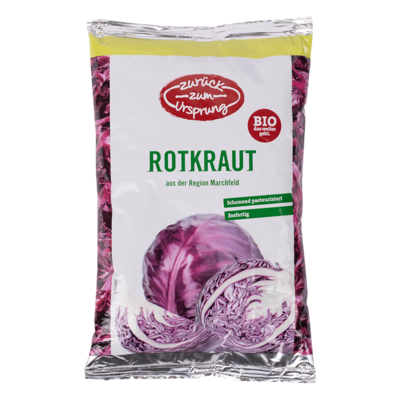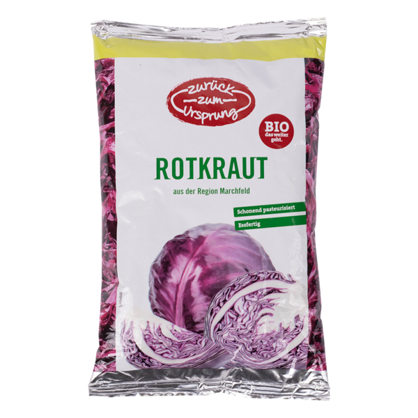 500gUnser servierfertiges Rotkraut stammt zu 100% aus österreichischem Bio-Anbau. Durch die schonende Verarbeitung behält es seine intensive, natürliche Farbe und seinen feinwürzigen Geschmack. Ideal als klassische Beilage zu Braten und Knödeln oder als würzige Komponente in vegetarischen Aufläufen.