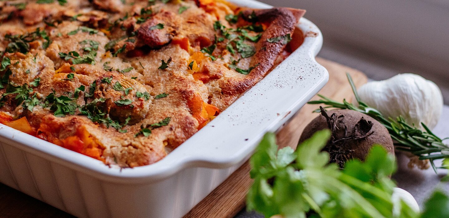 Die Lasagne für ca. 30 Minuten im vorgeheizten Ofen backen, bis sie schön cremig und goldgelb ist. Anschließend kurz ruhen lassen, dann anschneiden und genießen – fertig ist das bunte Winterwunder aus dem Ofen.