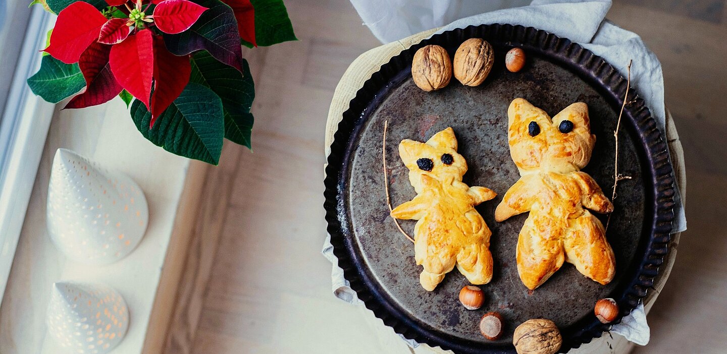 Gehen lassen & backen: Geformte Krampusse abgedeckt ca. 30 Minuten gehen lassen. Backofen auf 180 °C Umluft vorheizen. 1 Eigelb mit 1 EL Milch verquirlen und die Krampusse bestreichen. Anschließend ca. 25–30 Minuten goldbraun backen.