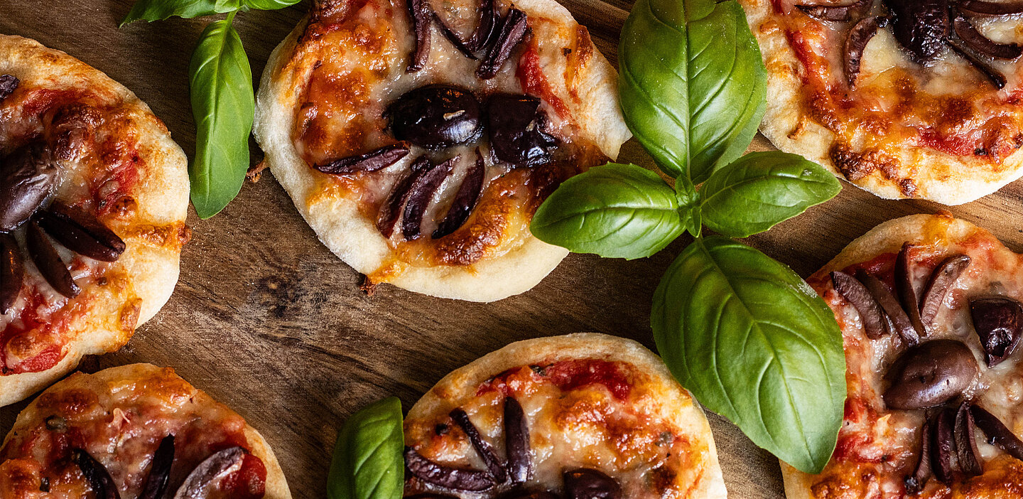Den Teig in 12 bis 16 Stücke teilen, zu Kugeln rollen und flachdrücken. Mit Tomatenmischung bestreichen und geriebenen Käse darauf verteilen. Nun auf jede Mini-Pizza eine „Spinne“ aus Olivenkörper und -beinen legen. 10 bis 15 Minuten backen, bis der Rand goldbraun ist und der Käse schmilzt. Kurz abkühlen lassen und servieren.